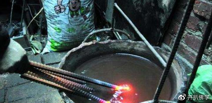 这就是淬火,将烧红打好的铁,突然放入水中,显现色彩。